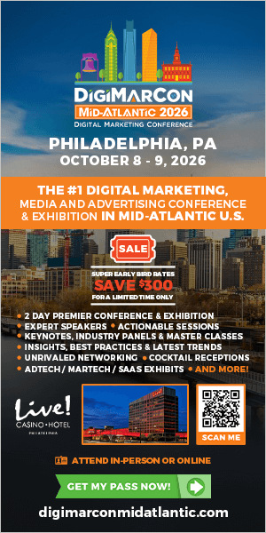 Sign up for email updates and get your the FREE DigiMarCon Mid-Atlantic brochure and stay in the know about all things DigiMarCon including price changes, discounts, and the latest speakers added to the schedule.
